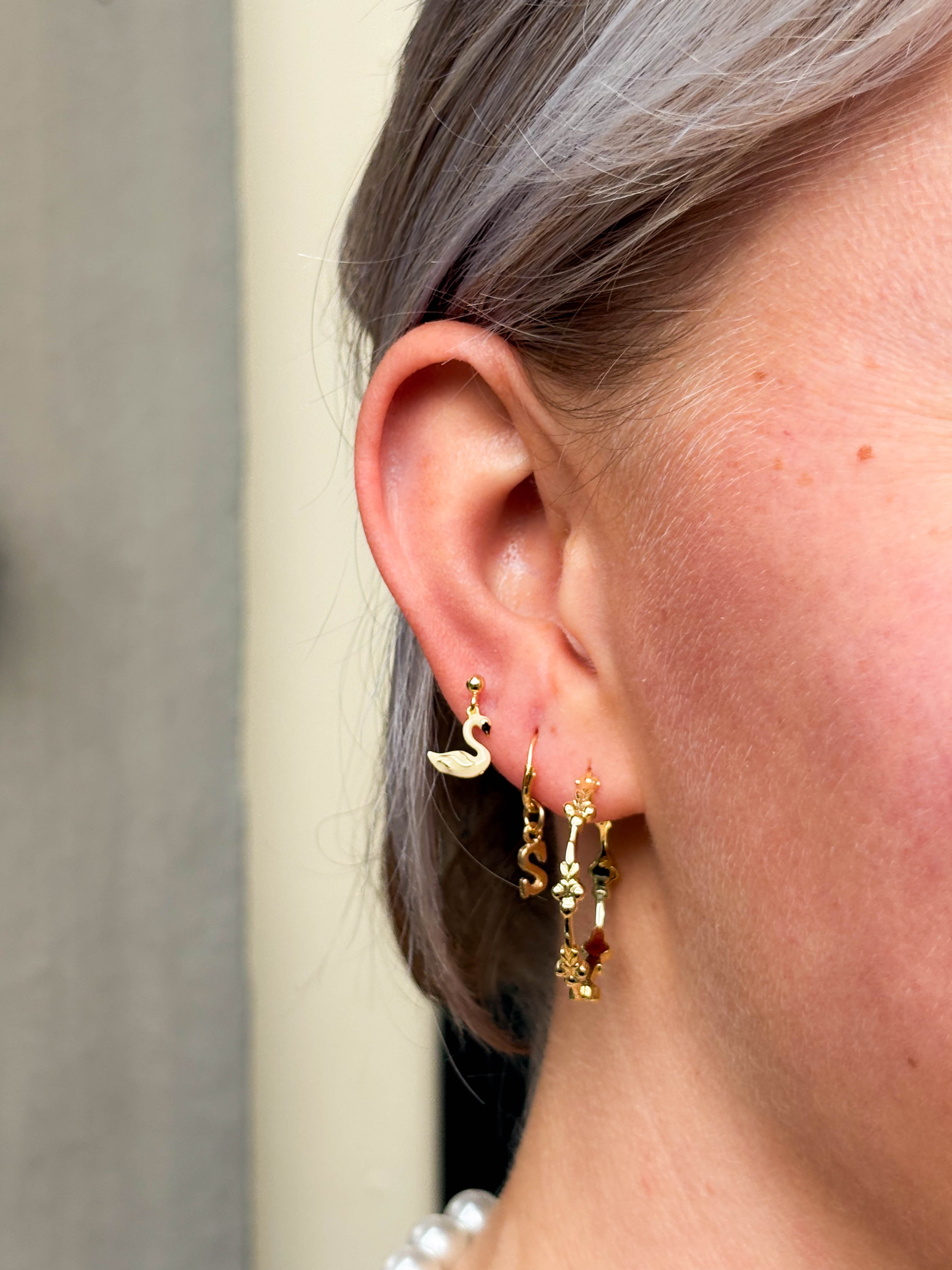 Zwanenmeer geïnspireerde oorbel met emaille details van Anna+Nina.