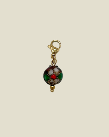 Een elegante hanger van 2,5 cm in de vorm van een zwarte bol, gedecoreerd met fijne bloemen. Het subtiele maar bijzondere ontwerp geeft zowel een ketting als een armband een stijlvolle en unieke uitstraling.