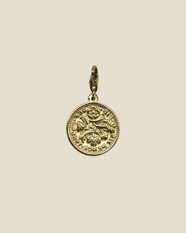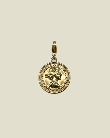 Een stijlvolle hanger in de vorm van een munt, uitgevoerd in goudkleurig stainless steel. Het tijdloze en elegante ontwerp maakt deze pendant perfect voor zowel een ketting als een armband.