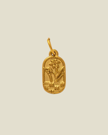 Pendant Round Square Flowers Gold