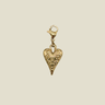 Een hanger in de vorm van een gestructureerd hart, uitgevoerd in goudkleurig stainless steel. Het elegante en moderne ontwerp geeft zowel een ketting als een armband een stijlvolle en verfijnde uitstraling.