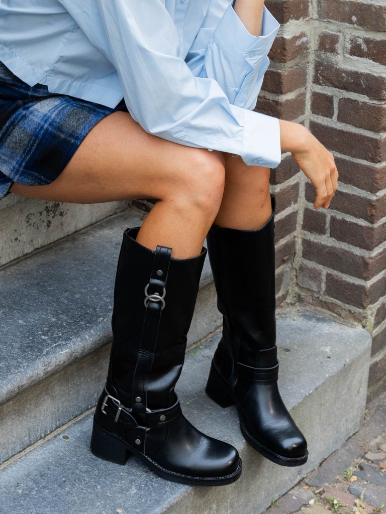 Toffe biker boots in het zwart, met stoere zilveren details.