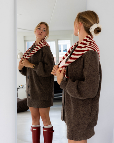 De Scarf Valentina Wool Striped Red White. Toffe accessoire om je outfit af te maken.
