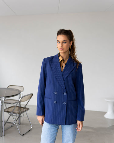 De diepblauwe kleur van de Selvia blazer met subtiel krijtstreepdetail geeft deze blazer een krachtige, stijlvolle uitstraling. De rechte, iets oversized fit zorgt voor een nonchalante look met een vleugje city chic.