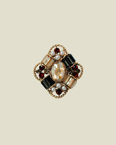 Een opvallende broche met een groot diamantvormig ontwerp in een vintage stijl. Het elegante en tijdloze sieraad maakt elke outfit direct verfijnder en stijlvoller.