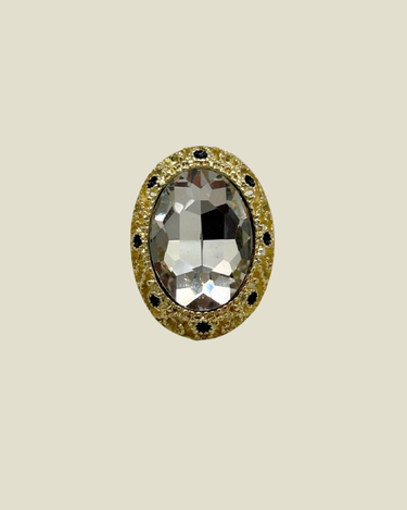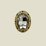 Een verfijnde broche met een ovale steen in een klassiek vintage ontwerp. De combinatie van het elegante design en de subtiele glans maakt dit sieraad een tijdloze accessoire die elke outfit compleet maakt.