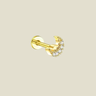 Piercing Zircon Moon Gold is een subtiele en stijlvolle piercing met een halve maan, bezet met sprankelende zirconia steentjes. Het fijne, elegante ontwerp geeft een luxe glans en voegt een dromerige touch toe aan elke ear party — perfect voor zowel dagelijks dragen als speciale gelegenheden.