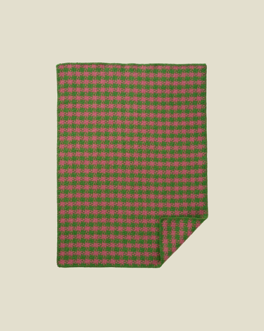 De Dogtooth Small blanket is gemaakt van 100% lamwol, nu in speelse groen/roze kleuren. Lamwol houdt kinderen warm en droog dankzij de ademende, van nature vuilafstotende eigenschappen. Met een formaat van 65 x 90 cm is deze deken/plaid perfect voor de kinderwagen of wiegje.