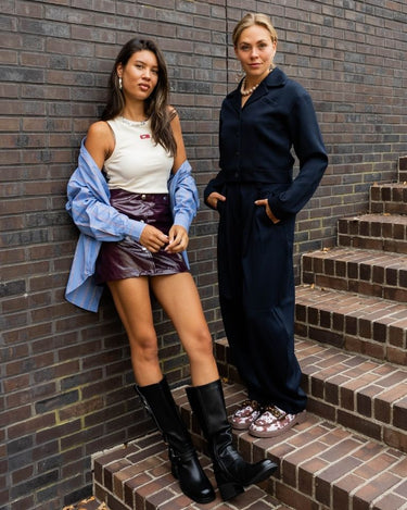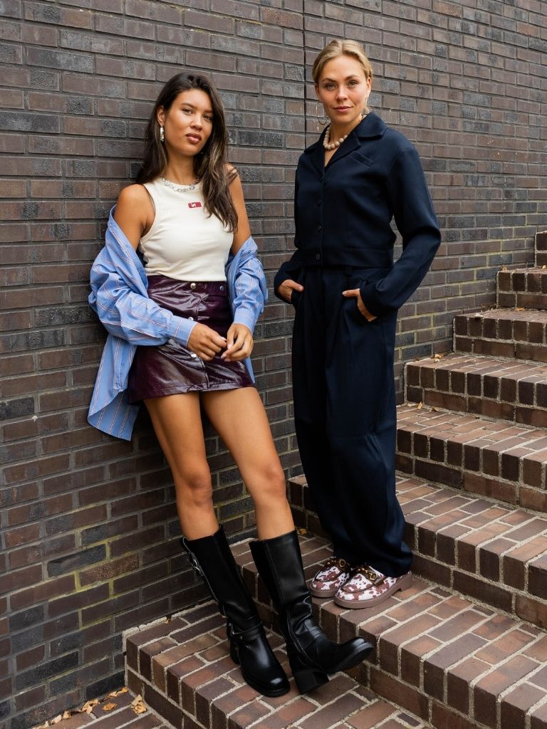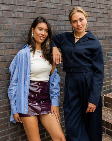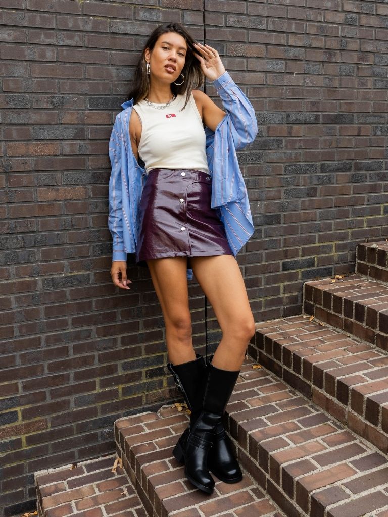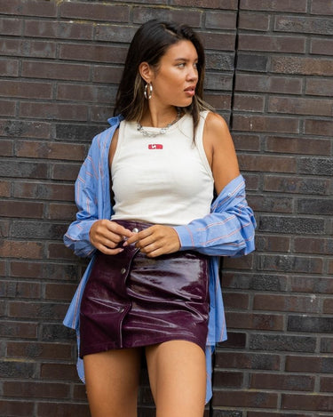 Korte rok van imitatieleer met hoge taille van Laagam.