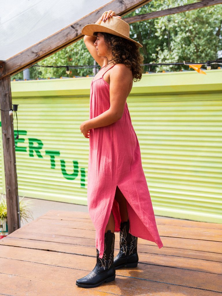 Sleeveless jurk met open rug en zijsplit van Make My Day.