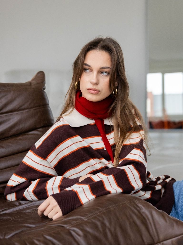De Valentina Scarf in Red is een klein, stijlvol sjaaltje dat elke outfit een chique en speelse twist geeft. Draag hem losjes om je nek, geknoopt aan je tas of in je haar voor een vleugje kleur. De wolmix voelt zacht aan en geeft de sjaal een luxe uitstraling, terwijl de warme rode tint zorgt voor een opvallend accent.