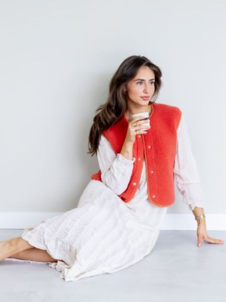 Deze lichte en comfortabele bodywarmer is gemaakt van elastische, zachte wol, waardoor hij heerlijk draagt en optimale bewegingsvrijheid biedt. Ideaal voor actieve kinderen die graag buiten spelen of binnen een extra laagje willen.