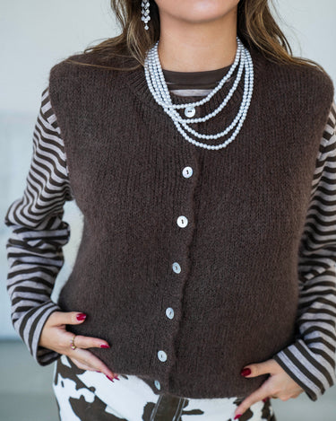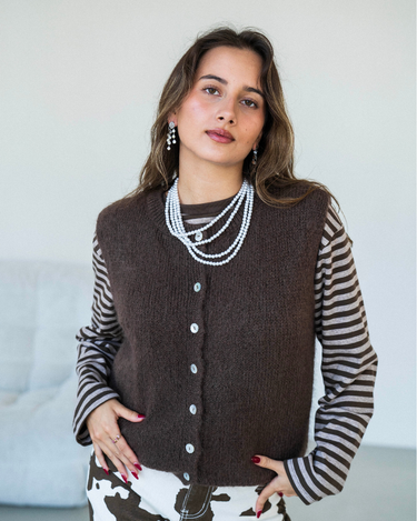 Stoer gebreid spencer van harig materiaal gemaakt van wol, draagt lekker zacht en heeft mooie knoopjes.