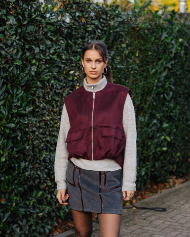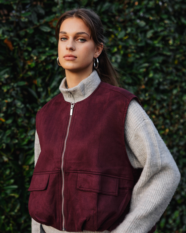 Dit gilet is een stoere en tegelijkertijd stijlvolle toevoeging aan je garderobe. Dankzij de subtiel ballonvormige onderkant krijgt het een moderne, vrouwelijke uitstraling. Het gilet heeft een iets oversized pasvorm waardoor het comfortabel zit en makkelijk over een dikke trui of blouse te dragen is.