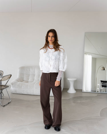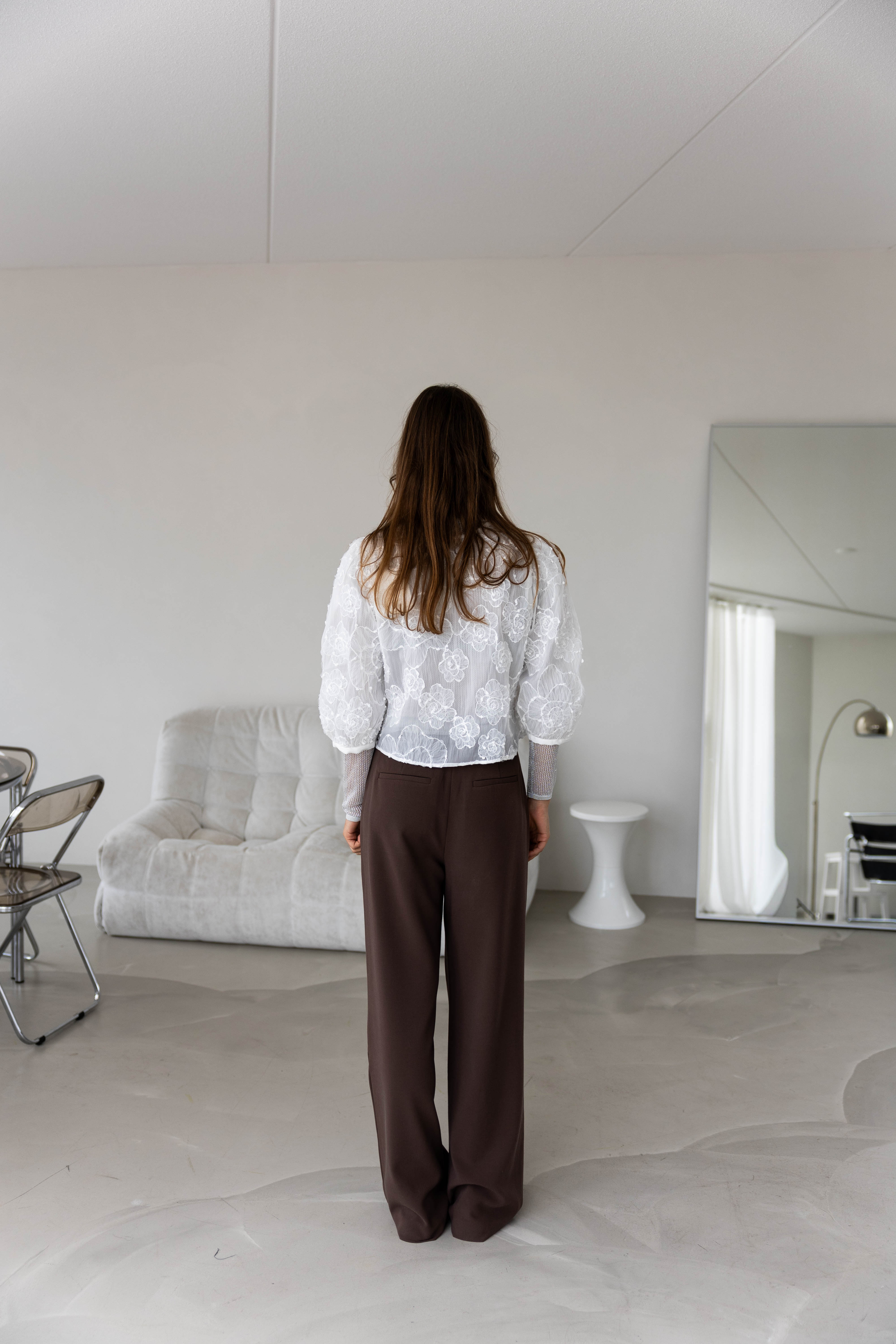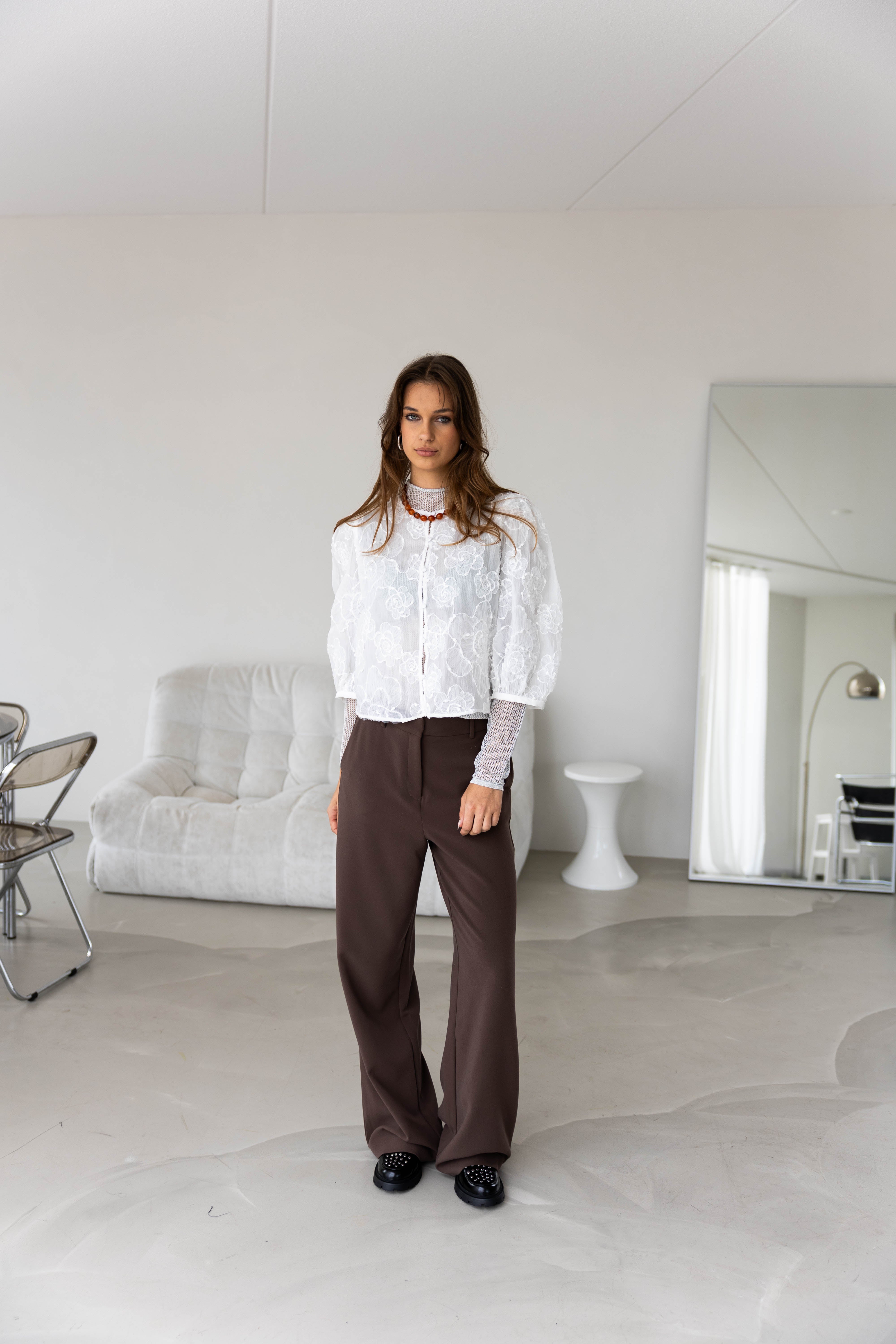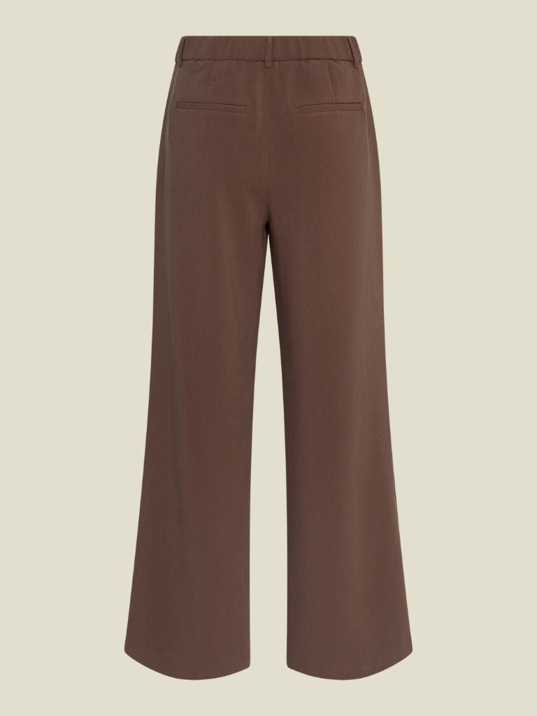 De hoge taille en wide leg van de Macy Michelle pants geven de broek een moderne, flatterende look, terwijl het elastiek aan de achterkant zorgt voor een comfortabele pasvorm die bij veel figuren goed aansluit. Combineer de broek met een grove trui en stoere loafers voor een casual look, of met een blouse voor een meer geklede stijl.