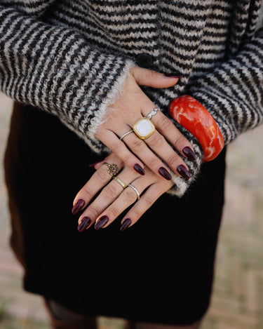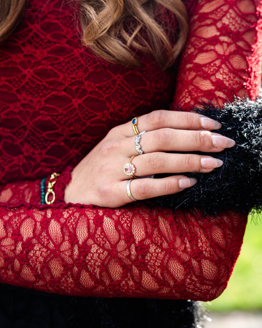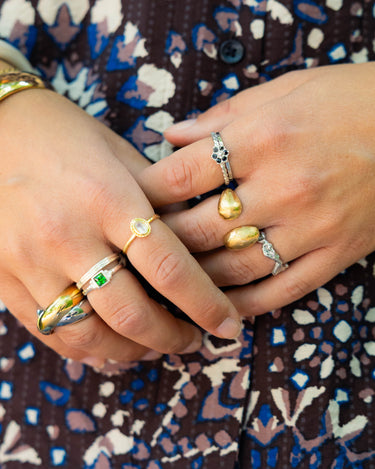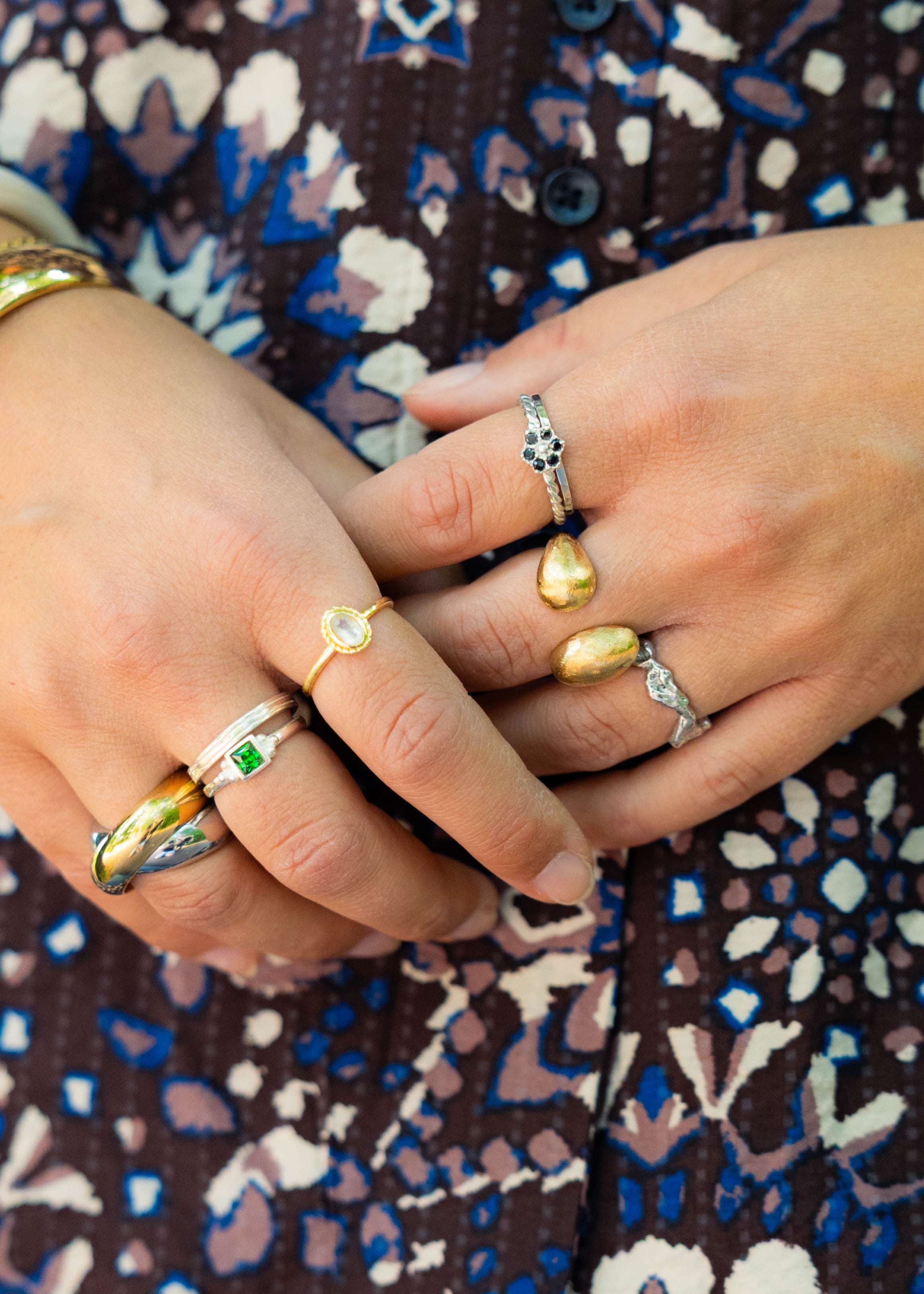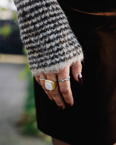 De Ring Shape Silver van Xzota is een chunky ring met abstracte, organische vormen die direct een modern tintje aan je look geven. Het speelse ontwerp maakt het een opvallend accessoire dat perfect is om solo te dragen of te combineren met andere ringen voor een gelaagde, eigentijdse stijl.