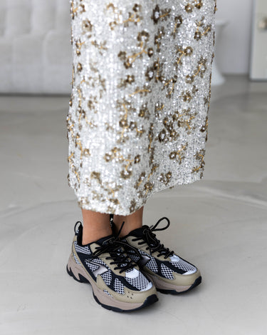 De Magnolia HW Silver Coco is een glinsterende rok met zilver- en taupekleurige pailletten en een elegante hoge taille. Dankzij de verschillende tinten is hij makkelijk te combineren en geeft hij elke outfit een feestelijke, stijlvolle touch.