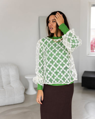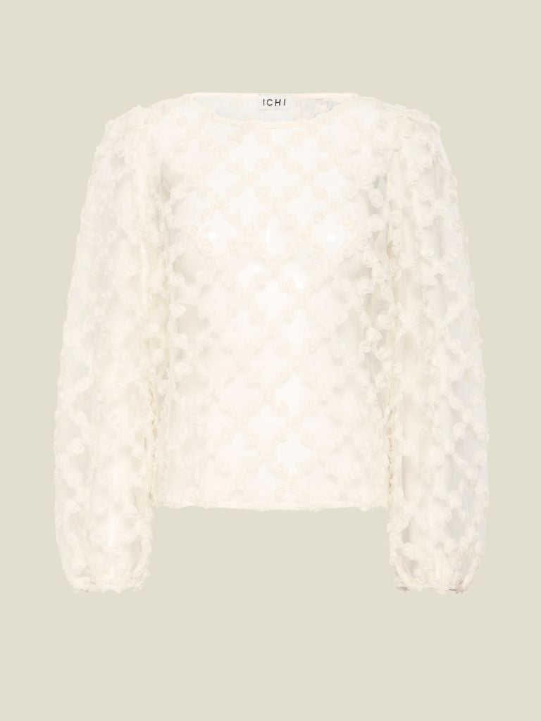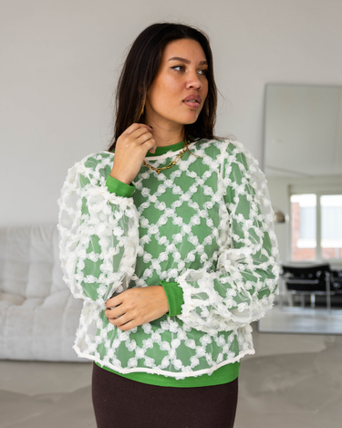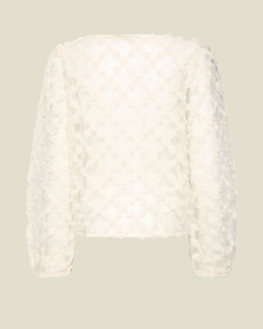De Longsleeve Elki Almond Milk is een lichte, iets doorschijnende top met een subtiel bloemenprintje over de stof. Het zachte, neutrale Almond Milky-kleur geeft een frisse en vrouwelijke uitstraling, terwijl de kleine bloemetjes een speels detail toevoegen.
