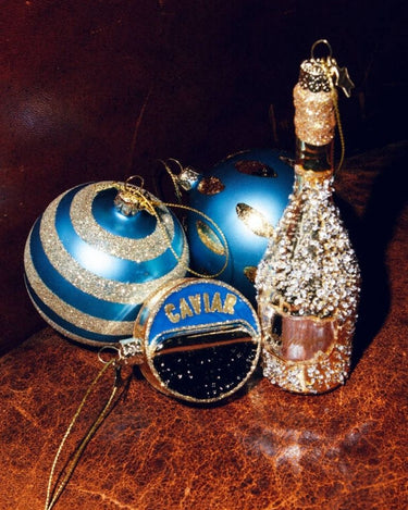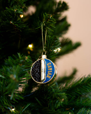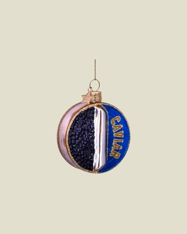 Het Ornament Blue Caviar Tin Can is een speels en uniek kerstornament dat je boom direct een opvallende twist geeft. Het ontwerp van een miniatuur blauwe kaviaarblikje zorgt voor een grappig en verrassend accent tijdens de feestdagen.