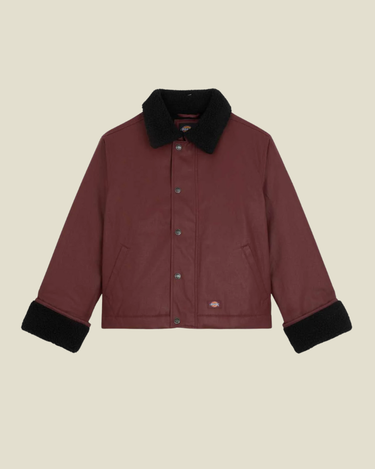 De Decherd-jas is een tijdloze A-lijn jas met een modern accent. De buitenkant heeft een rubberen coating die doet denken aan een waxlaag, terwijl de fleecevoering, hoge kraag en manchetten zorgen voor extra comfort. De jas is stijlvol afgewerkt met omgeslagen manchetten, metalen drukknopen met het Dickies-logo en een verborgen ritssluiting aan de voorkant.