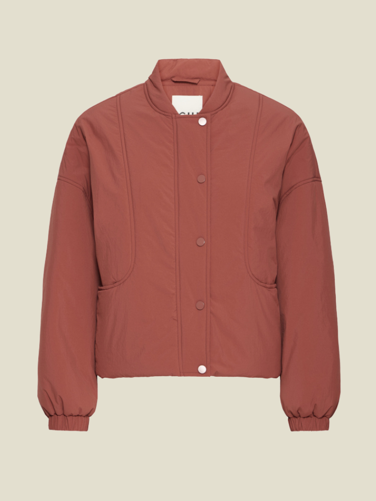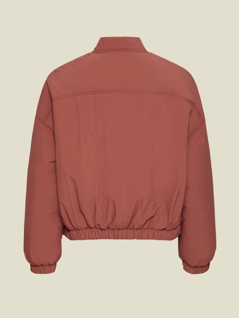 Het Jacket Jokura Cowhide van ICHI is een stijlvol padded tussenjasje in een warme roest-oud roze kleur. Het jasje heeft een korte boxy fit met een kleine opstaande kraag, praktische steekzakken en subtiele stikseldetails die het geheel een verfijnde uitstraling geven.