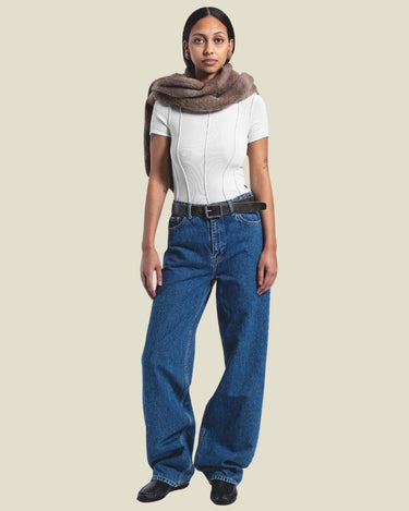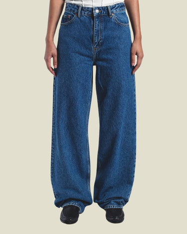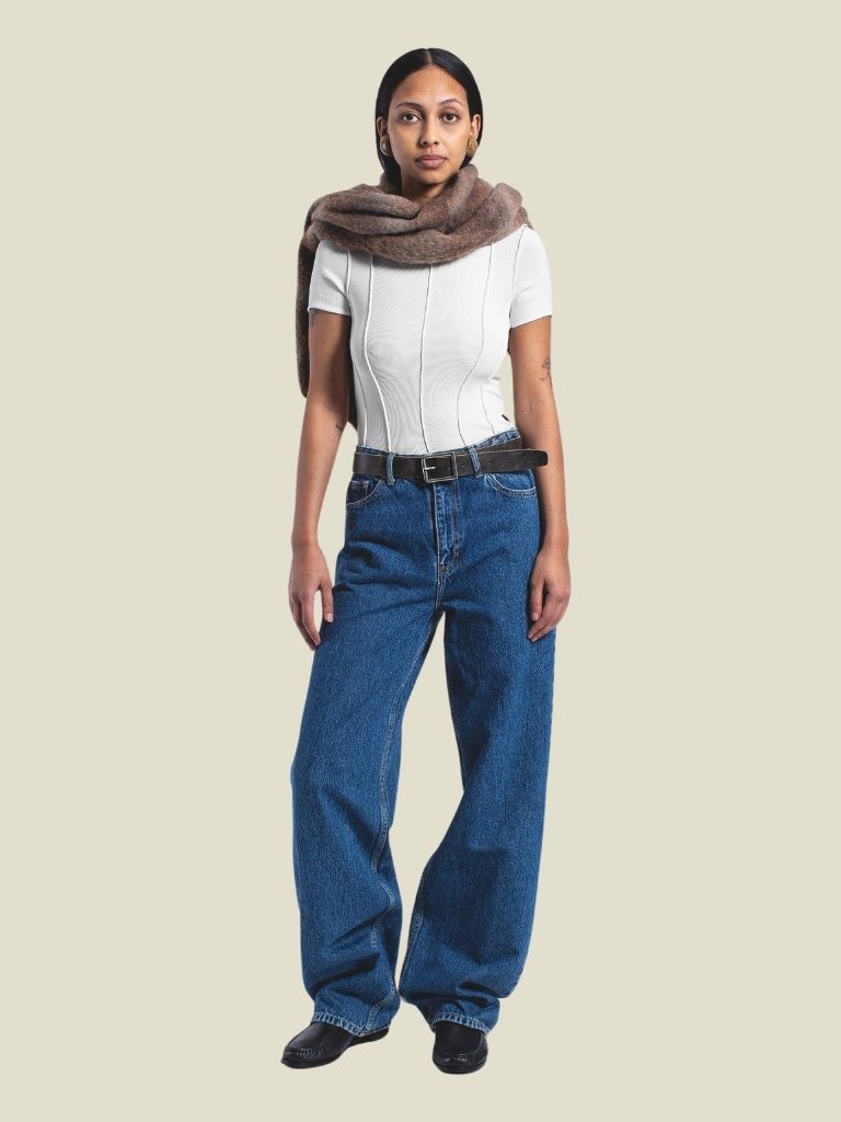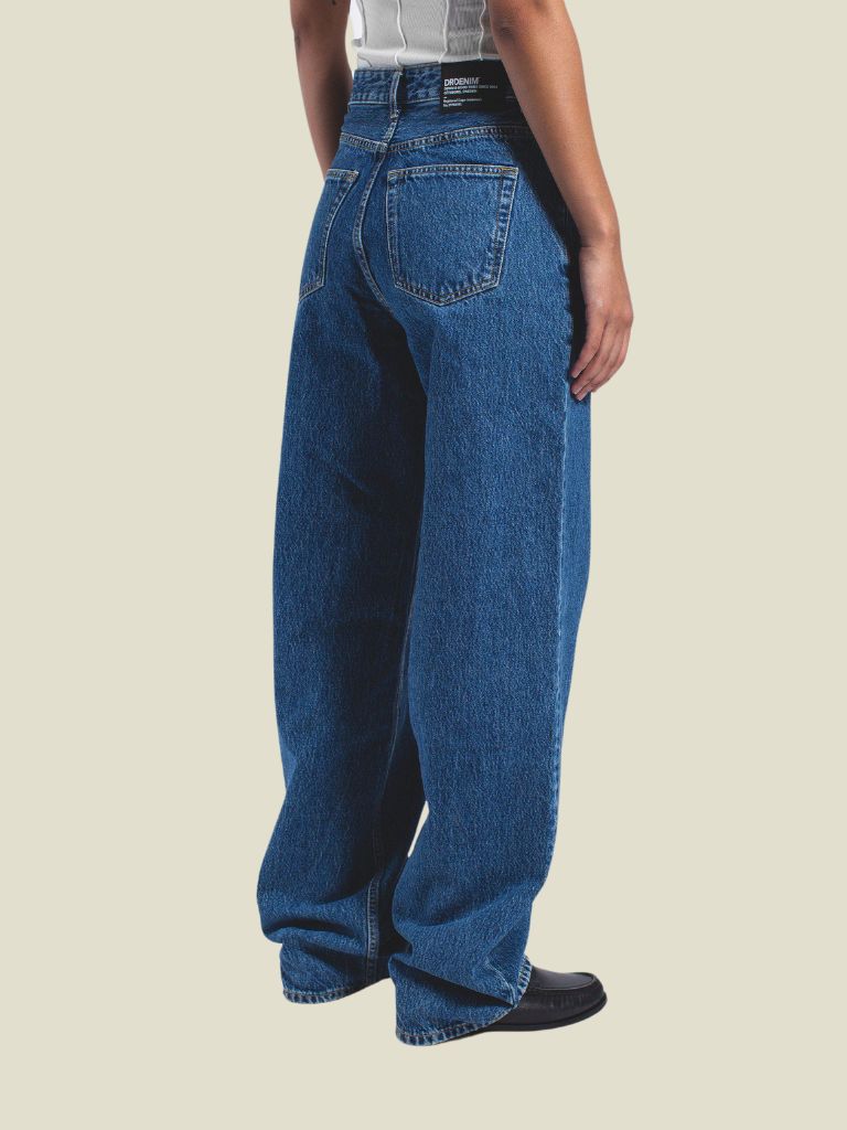 Jeans is gemaakt van denim. Denim is een sterke katoenen stof. We raden je aan om jeans niet te vaak te wassen om de kleur en het model te behouden.