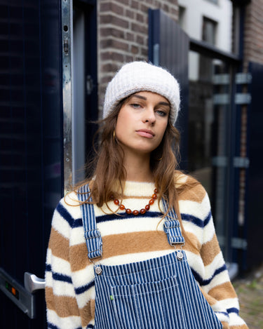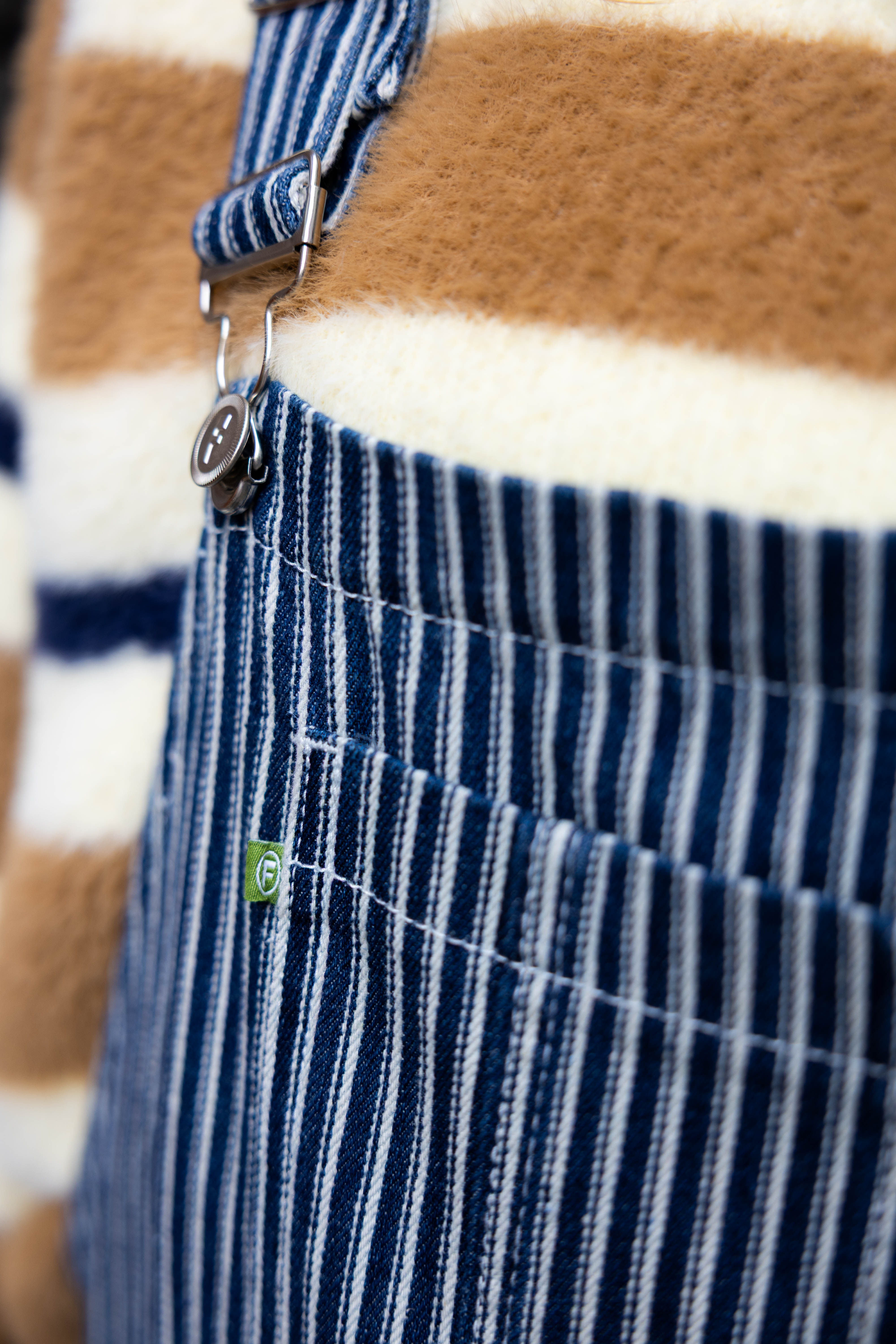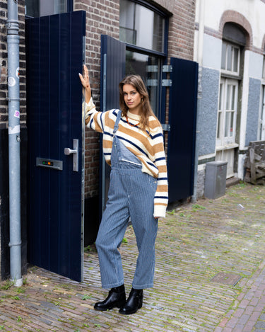 Creëer een stoere maar stijlvolle look met deze gestreepte tuinbroek van FRNCH. Door de jeansblauwe kleur is hij gemakkelijk te combineren met veel verschillende tinten.