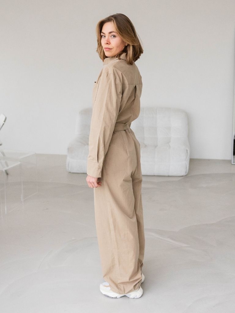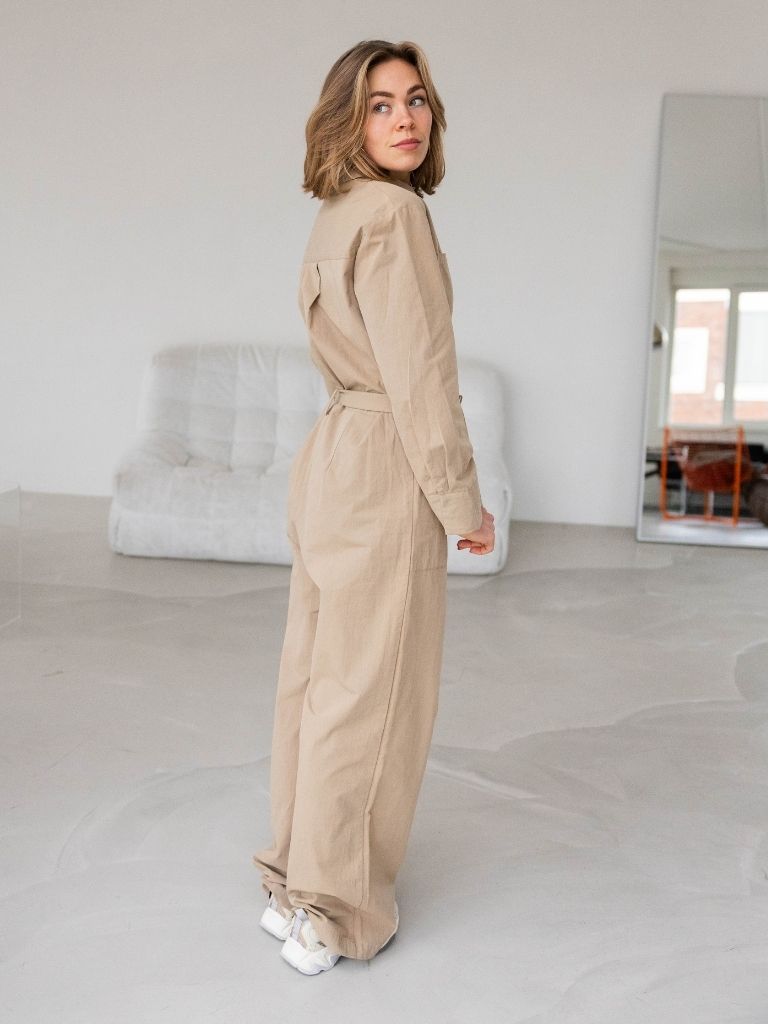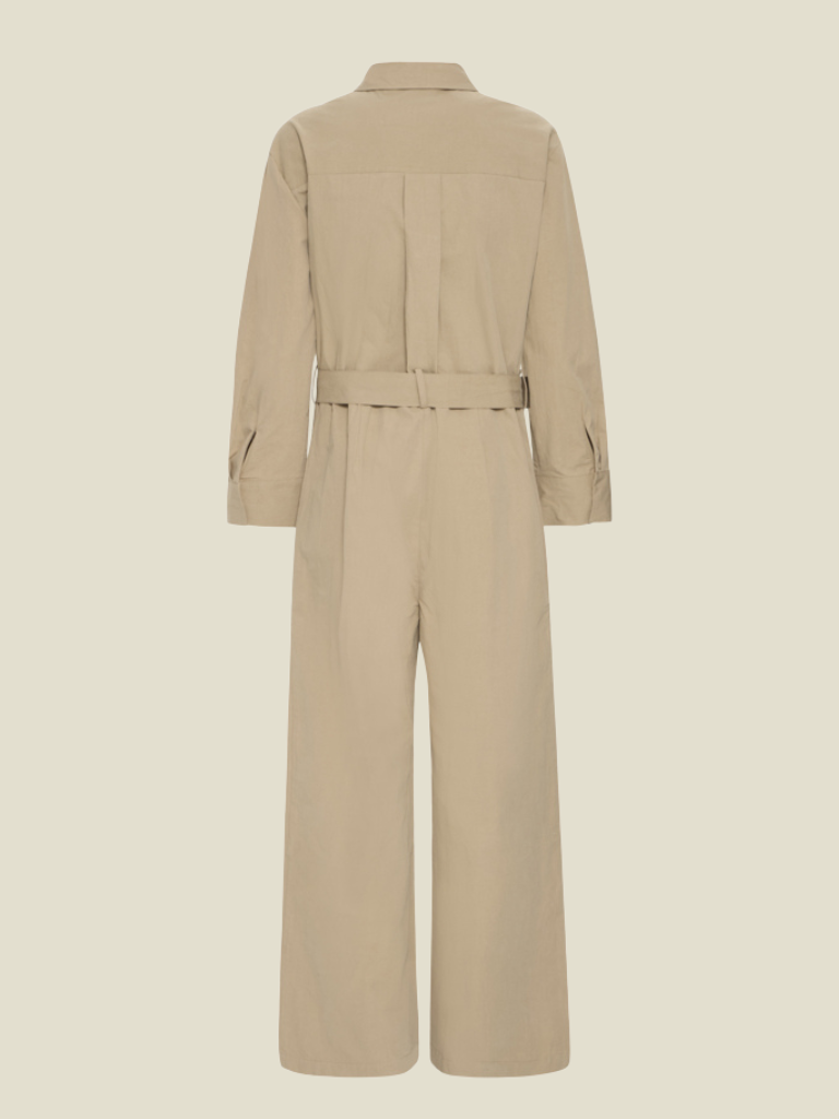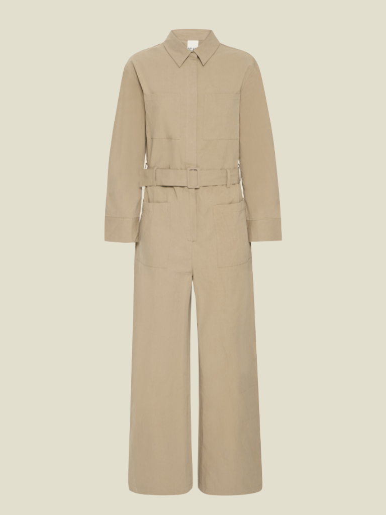 De Jumpsuit Kimir Sepia Tint van ICHI is een stoere 100% katoenen jumpsuit in een zandkleurige tint. De worker-stijl met opzetzakken en taille-riem geeft karakter, terwijl de wijd uitlopende pijpen en normale fit boven zorgen voor een comfortabele, moderne pasvorm.
