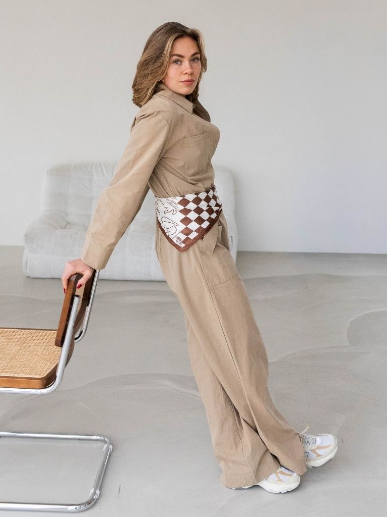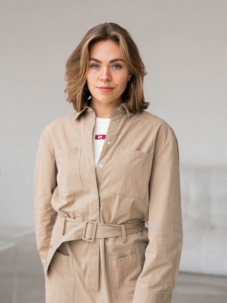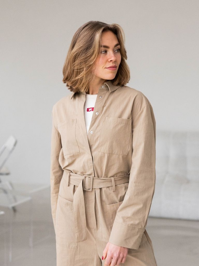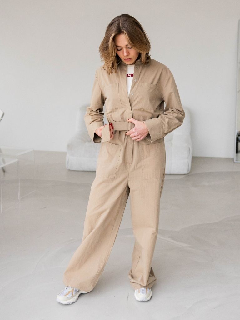 De Jumpsuit Kimir Sepia Tint van ICHI is een stoere 100% katoenen jumpsuit in een zandkleurige tint. De worker-stijl met opzetzakken en taille-riem geeft karakter, terwijl de wijd uitlopende pijpen en normale fit boven zorgen voor een comfortabele, moderne pasvorm.