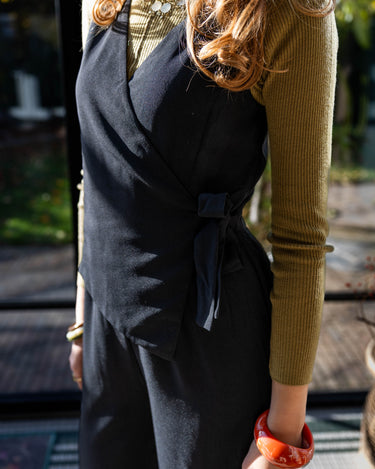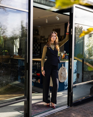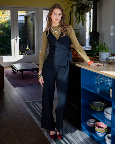 De Jumpsuit Selena Black is een stijlvolle en veelzijdige musthave voor jouw garderobe. Deze mouwloze jumpsuit heeft een subtiele overslag aan de bovenkant, wat zorgt voor een flatterende en elegante look. Dankzij het minimalistische silhouet kun je hem op talloze manieren stylen: draag er een gekleurde top, kanten longsleeve of mesh item onder voor een speels contrast.