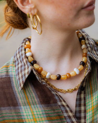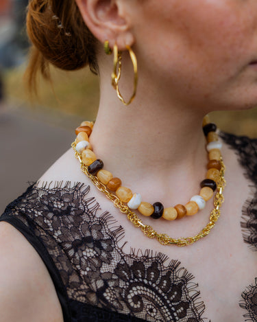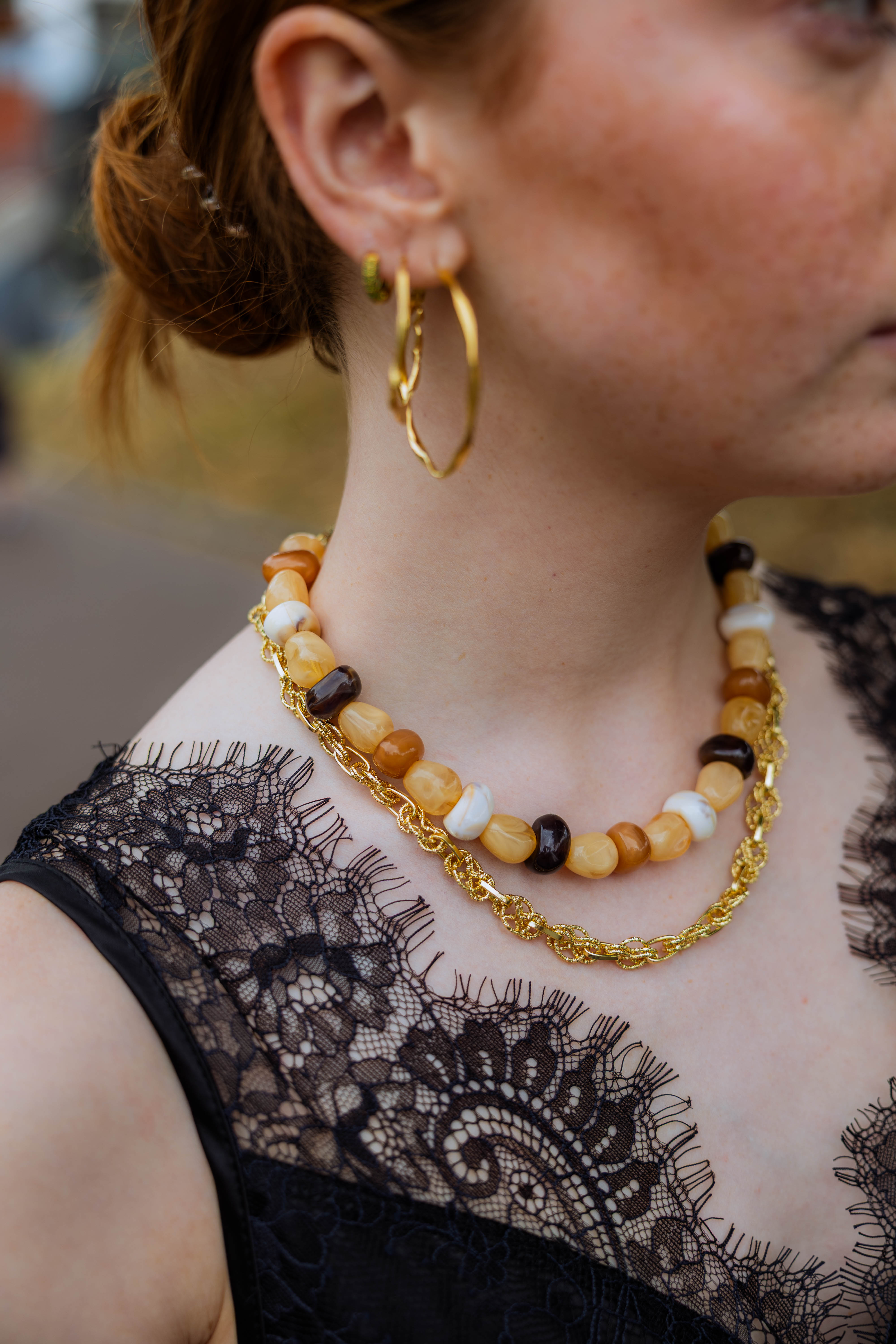 Gemixte stenen ketting gemaakt van Resin. Leuke ketting om te combineren met andere kettingen en je look mee af te maken.