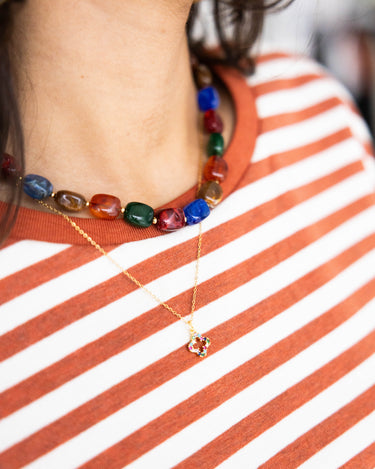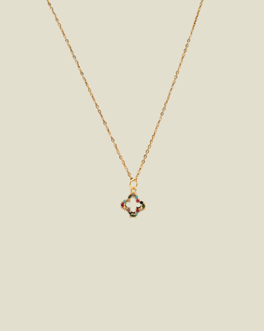 Deze Necklace Coloured Zircon Flower Gold is een verfijnde ketting met een speels bloemdetail van gekleurde zirconstenen. De gouden afwerking geeft het sieraad een elegante touch, terwijl het delicate ontwerp zowel solo als in laagjes gedragen kan worden voor een stijlvolle, persoonlijke look.