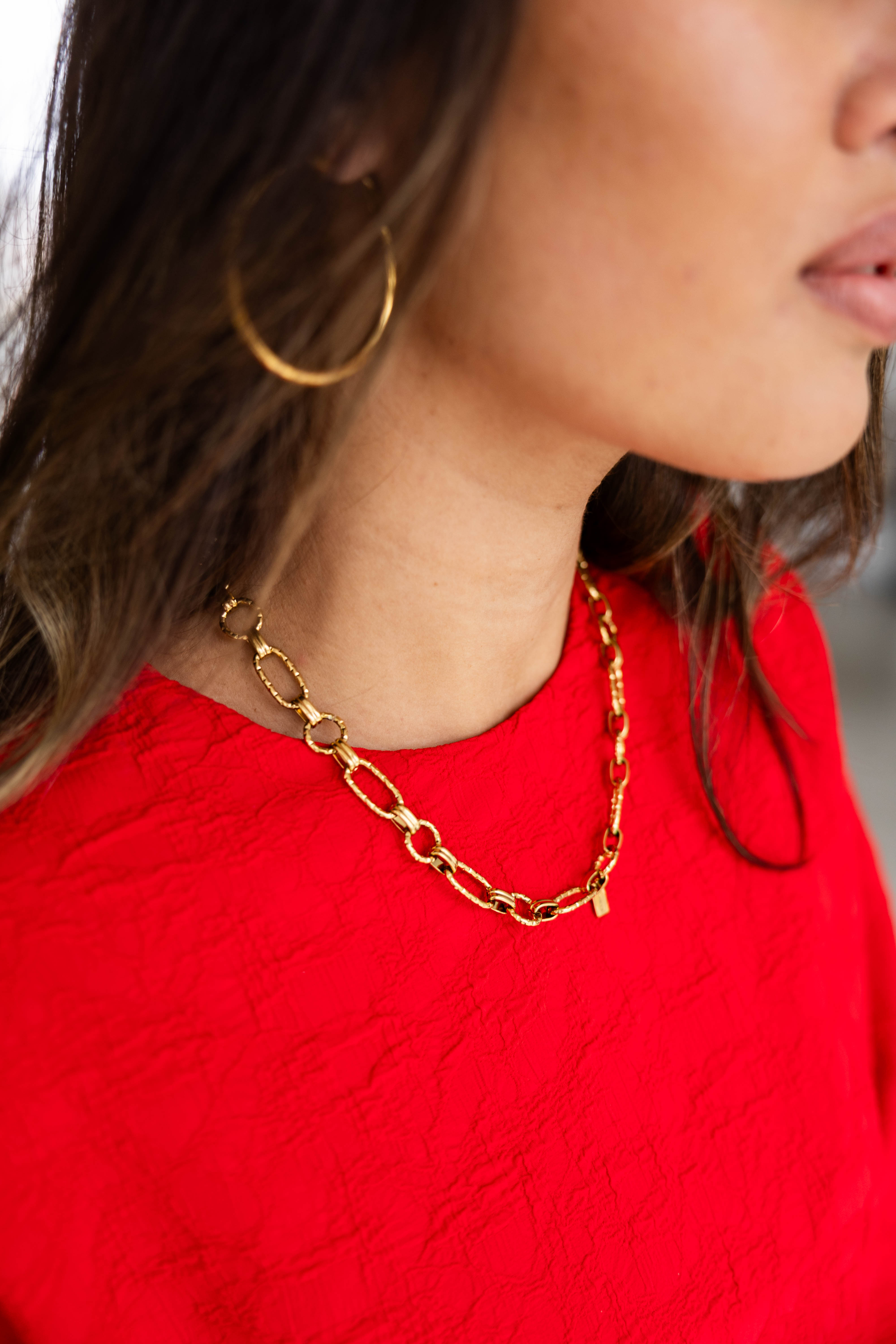 Een stijlvolle gouden schakelketting van stainless steel. Deze ketting is goed te combineren met andere kettingen voor een speels effect.