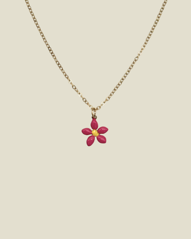 Necklace Kids Flower Pink is een speels en stijlvol sieraad voor de jonge trendsetter. Het fijne kettinkje draagt een schattige vogelhanger, die een subtiele glans geeft en een speelse touch toevoegt aan elke outfit — ideaal om solo te dragen of te combineren met andere kettingen voor een leuke layered look.