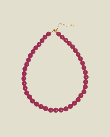 De Necklace Small Beads in fuchsia is een subtiel statement dat elke outfit een moderne, verfijnde touch geeft. De glanzende kralen van 10 mm zorgen voor een stijlvolle balans tussen elegant en speels — perfect om solo te dragen of te combineren met andere kettingen voor een gelaagd effect.