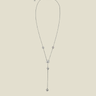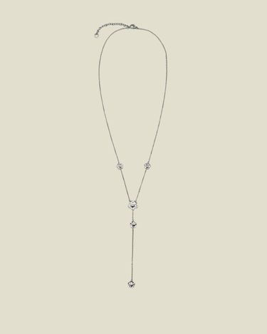 Een elegante Y-ketting met kleine zilverkleurige bloemetjes, subtiel en verfijnd van ontwerp. Perfect om solo te dragen voor een minimalistische look of te combineren met andere kettingen voor een speels, gelaagd effect.