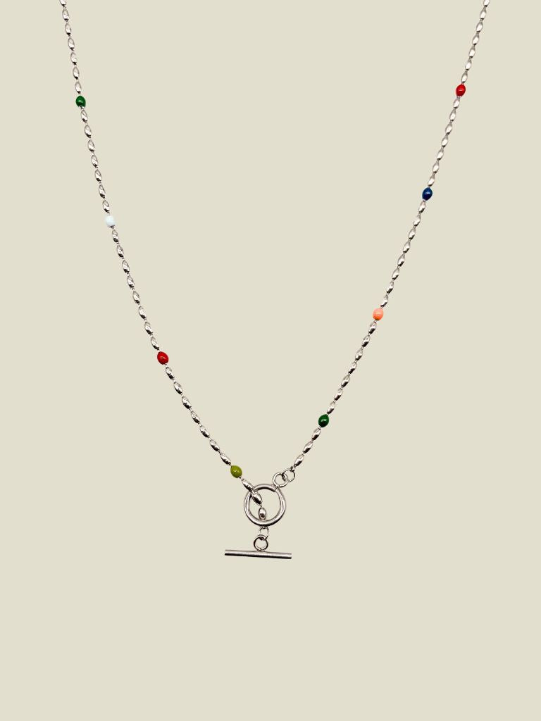 Necklace Y Color Dots Silver