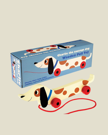 Maak kennis met Charlie, de schattige houten teckel die kinderen overal mee naartoe kunnen trekken. Het speelgoed stimuleert spelenderwijs beweging en coördinatie, en is een vrolijke metgezel voor kleine avonturiers.