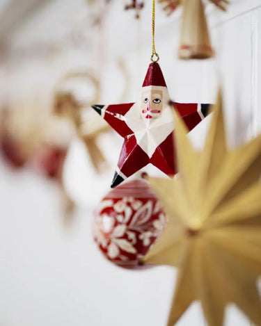Deze handbeschilderde houten kerstman, gemaakt in India, brengt ambachtelijke charme en feestelijke warmte in je kerstboom. Een unieke en sfeervolle eyecatcher voor de feestdagen.