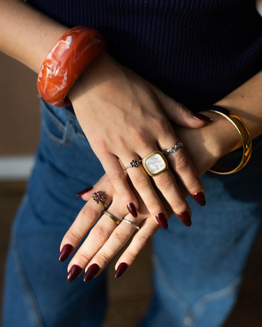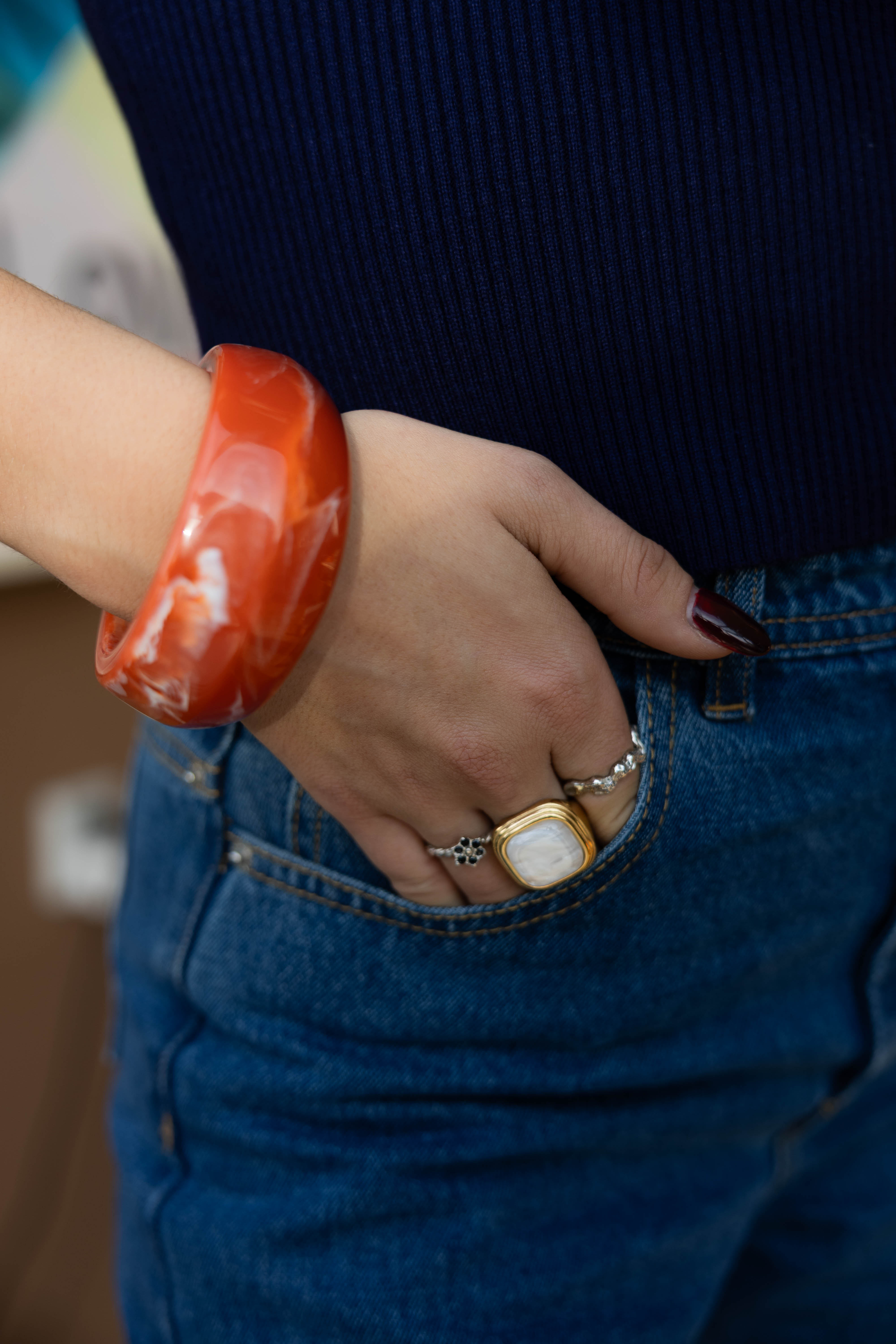 De Bangle Acryl Red is een opvallende en stijlvolle armband die iedere outfit een kleurrijke en speelse touch geeft. De dieprode kleur zorgt voor een krachtig accent, perfect om solo te dragen of te combineren met andere sieraden voor een trendy look.