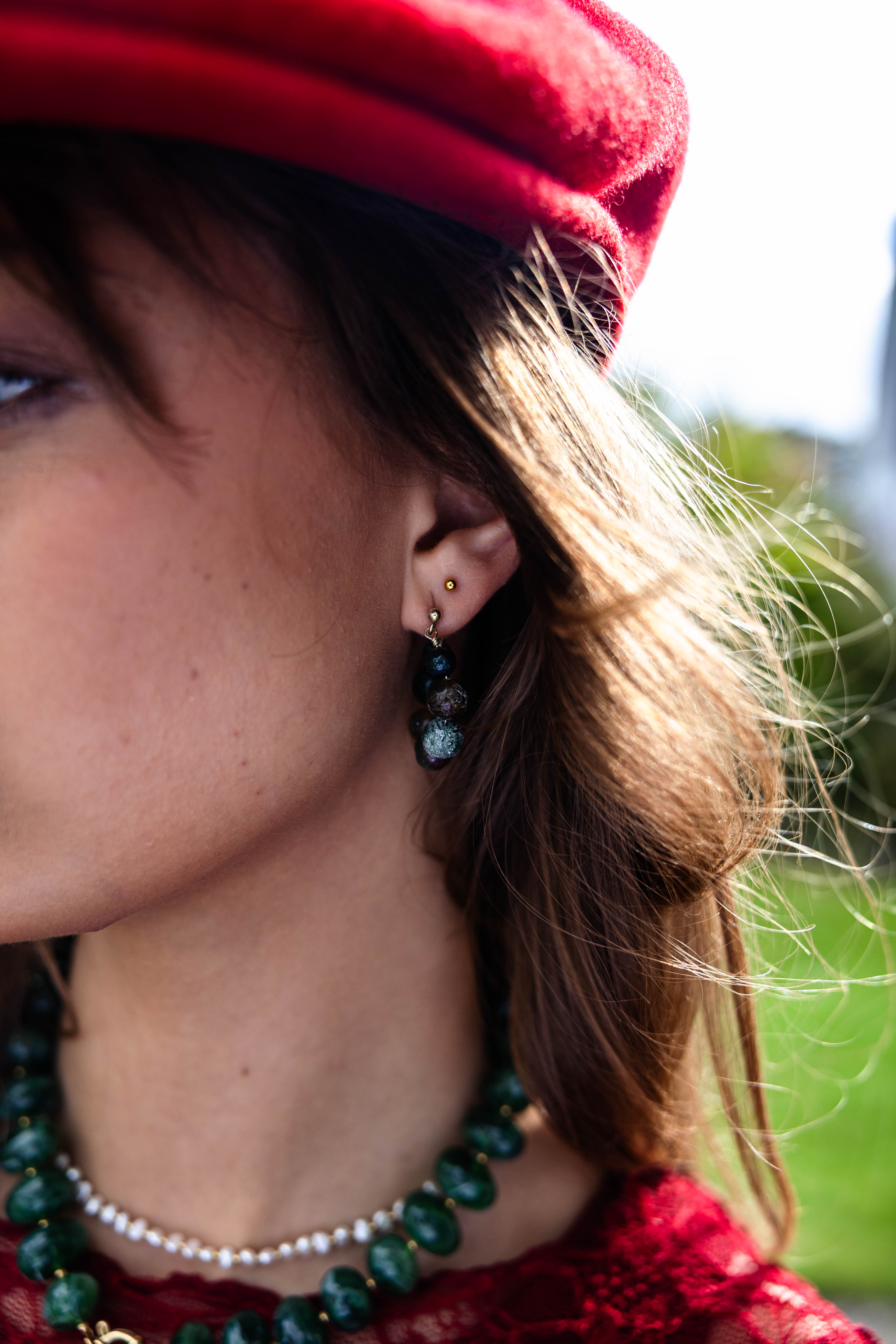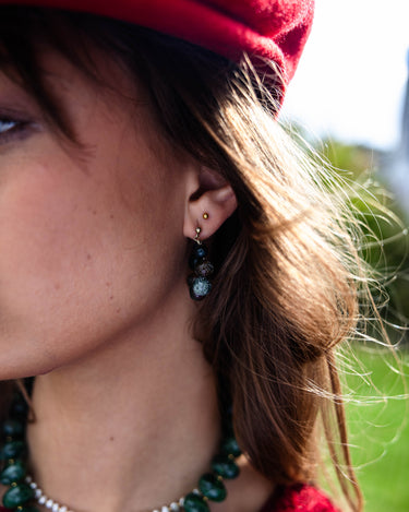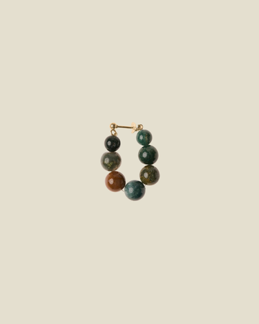 De Earring Big Green Stone Dot Gold van Xzota is een opvallende en stijlvolle oorbel met grotere natuurstenen in verschillende groentinten en een elegante gouden afwerking. De combinatie van groen en goud geeft een frisse en verfijnde uitstraling die moeiteloos bij iedere outfit past.