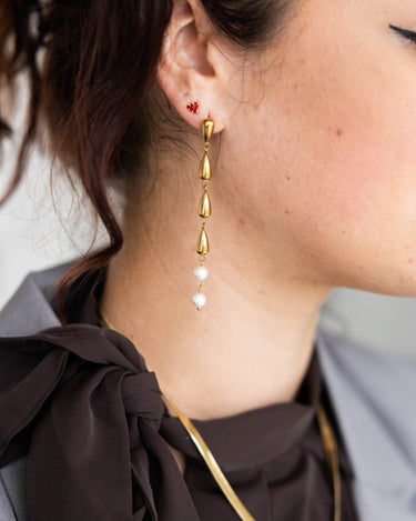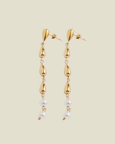 Funky Earrings (Set) Long Drops And Pearls Gold is een elegante en speelse set oorbellen met lange gouden druppels en verfijnde pareldetails. Het verfijnde, vloeiende design geeft een luxueuze uitstraling en voegt een stijlvolle touch toe aan elke look — perfect om solo te dragen of te combineren met andere oorbellen voor een gelaagde, trendy stijl.