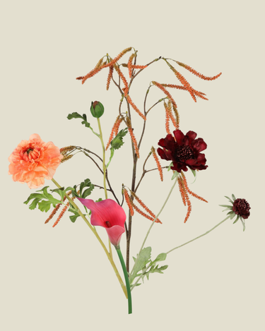 Bouquet Parisienne heeft een stijlvolle, moderne look met vier kunstbloemen in tinten roze, koraal en donkerrood. Het boeket voelt chic en warm tegelijk en is perfect voor wie net dat beetje elegantie aan het interieur wil toevoegen. Door ons samengesteld in Make My Day stijl — speels, maar altijd smaakvol.