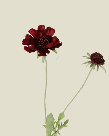 Realistische kunstbloem in dieprode Scabiosa tint