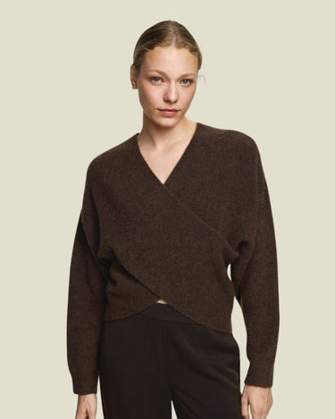 Flatterende pullover met wikkel design van Moss Copenhagen.