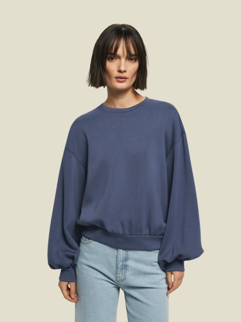 Het Brionna Ima Q Sweatshirt in Vintage Indigo is een moderne, cozy essential met een relaxed fit. De dropped shoulders en subtiele balloon sleeves geven het sweatshirt een eigentijdse, vrouwelijke twist. De zacht grijs-blauwe kleur maakt het een veelzijdige stijl voor iedere dag.