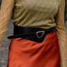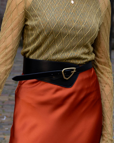 Zwarte shiny riem, een perfecte eye-catcher om je outfit mee af te stylen.