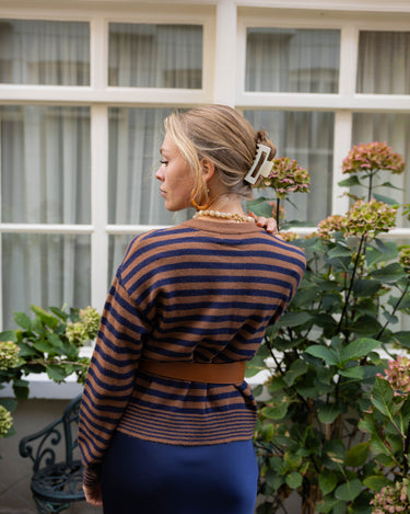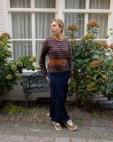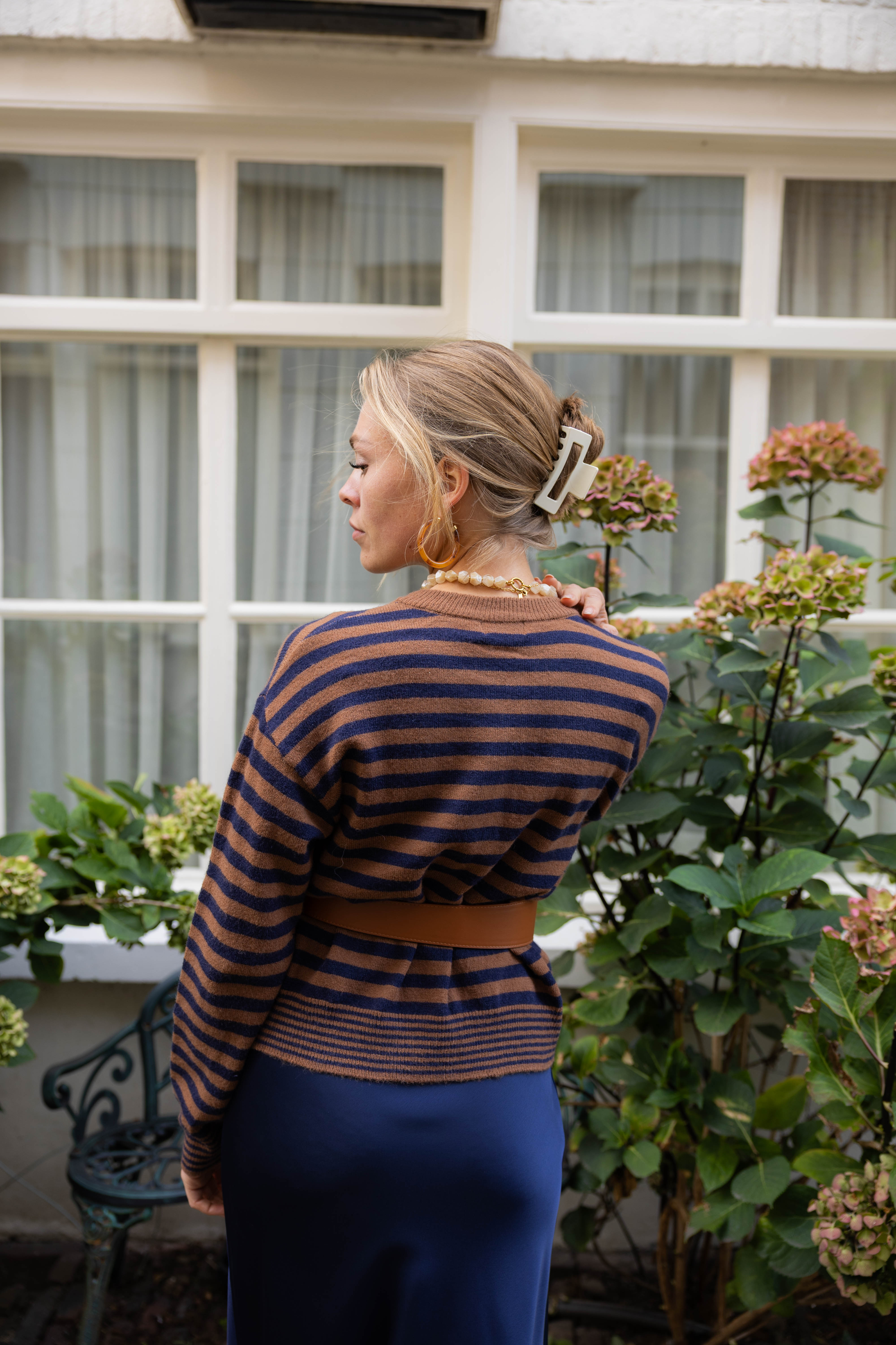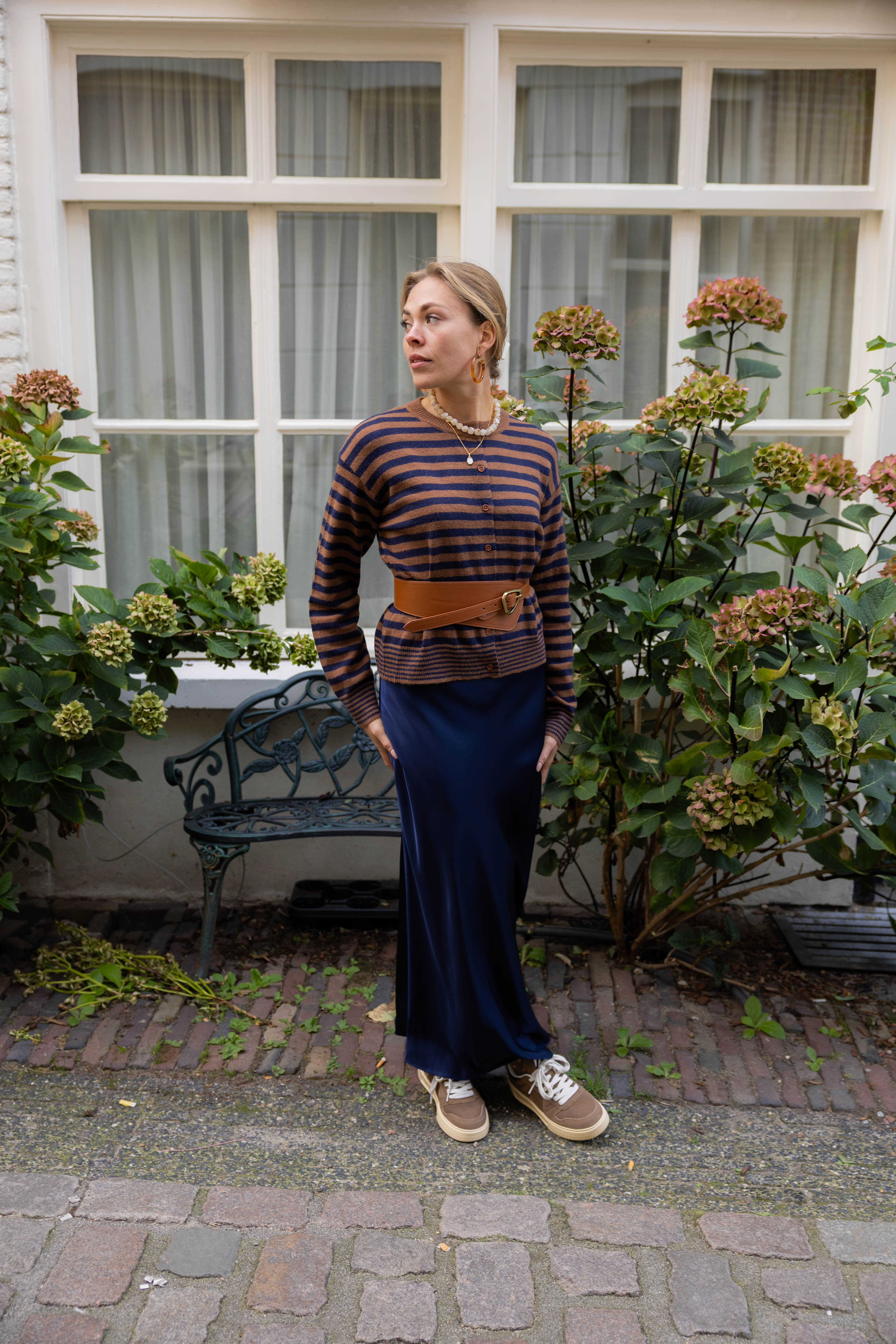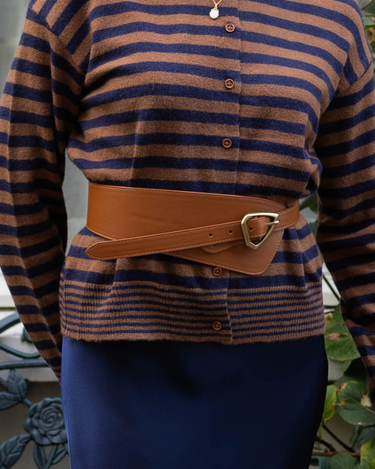 Cognac kleur riem, perfect om je outfit af te stylen en de taille te accentueren.