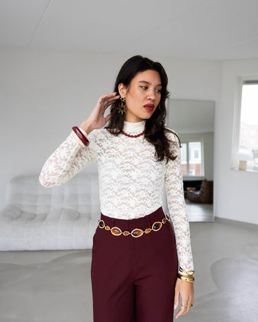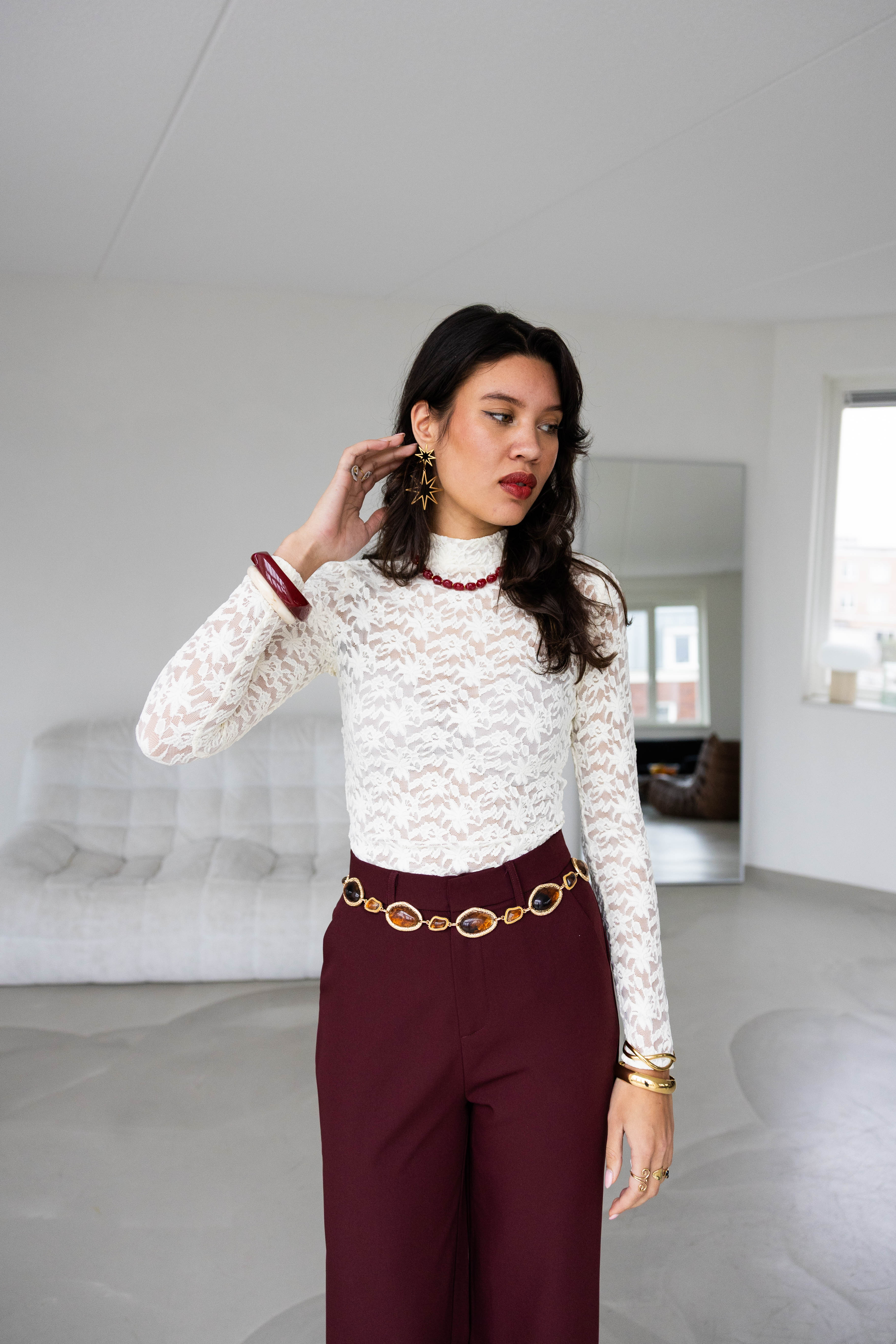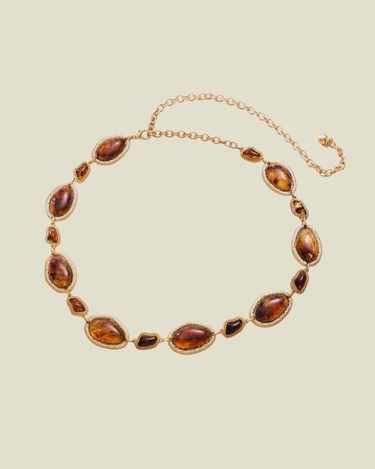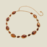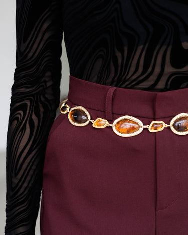 Chain Belt Brown Stones Gold is een stijlvolle en opvallende kettingriem met warme bruine stenen en een verfijnde gouden ketting. Het elegante en speelse ontwerp geeft elke outfit een luxe en trendy touch — perfect om je taille te accentueren of om een eenvoudige look te transformeren tot een stijlvolle statement.