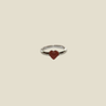Een handgemaakte ring van Xzota die kracht en romantiek combineert. Het hart van diep donkerrood resin in combinatie met zilver straalt passie en karakter uit, terwijl het ruwe zilver een stoere touch geeft.